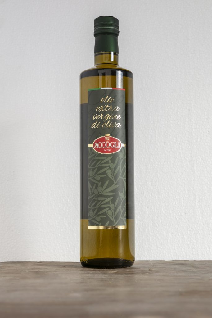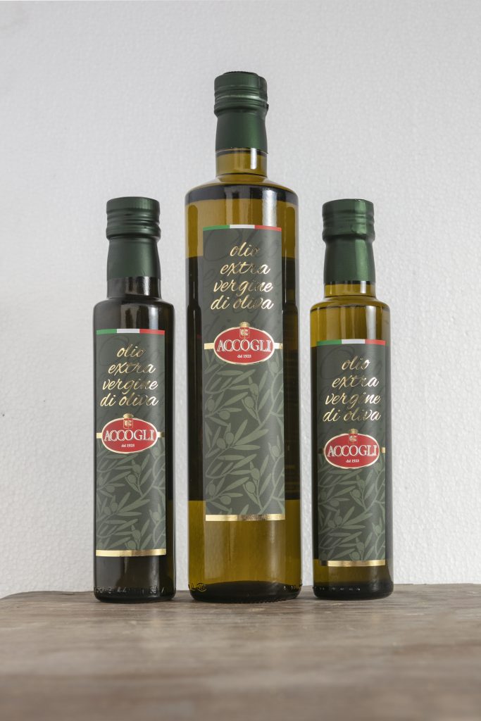 L’olio extravergine d’oliva Accogli si ottiene dalla molitura di quattro pregiate qualità di olive: Cellina di Nardò, Ogliarola di Lecce, Leccino e Coratina. Il prodotto finale si distingue per l’alta digeribilità, i toni fruttati e il retrogusto di mandorla. Il sapore è chiaro, raffinato, dal gusto dolce e al contempo lievemente piccante. La struttura del terreno e le favorevoli condizioni climatiche, infatti, generano un olio dal sapore e dal profumo intenso e armonioso, che rappresenta un connubio perfetto tra la cultura e le tradizioni di una terra florida e generosa. Si ottiene, quindi, un prodotto di carattere e la sua personalità rispecchia il luogo di origine.